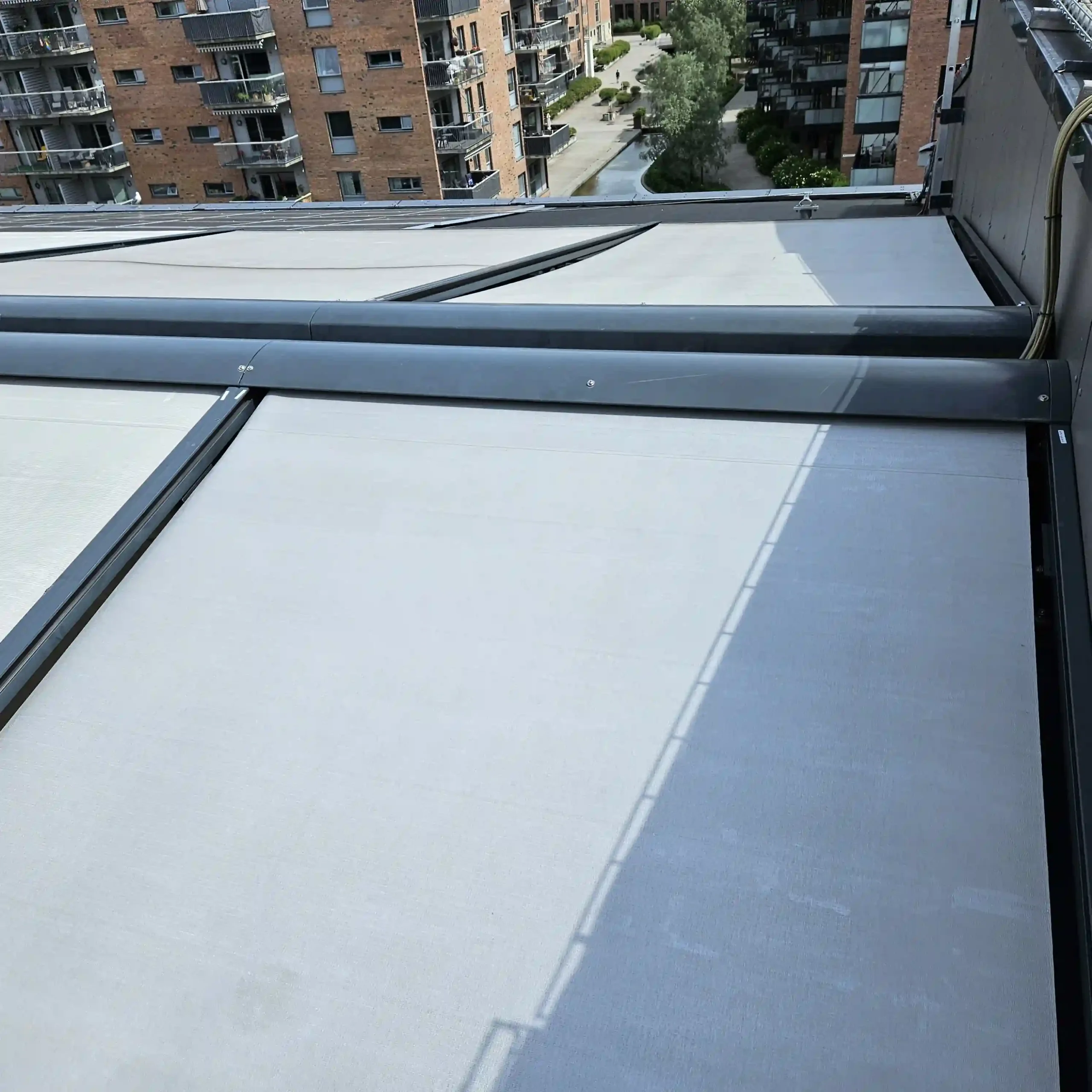 Vista Entreprenør AS tilbyr vedlikehold av solskjerming i Oslo og omegn for næringsbygg, fellesarealer og boliger. Våre teknikere sørger for at anleggene fungerer som de skal – både teknisk og visuelt. Godt vedlikehold handler om å være i forkant, oppdage behov tidlig og forlenge levetiden. Vi jobber grundig og sikkert, dokumenterer arbeidet og gir deg en tydelig status med anbefalinger videre, slik at du har full kontroll.